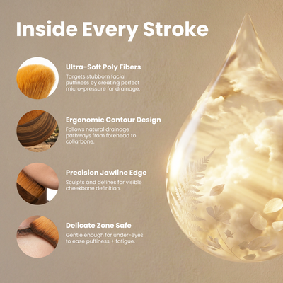 • Ergonomic curved handle • Natural, hypoallergenic bristles • Stimulates lymphatic drainage for a lifted look